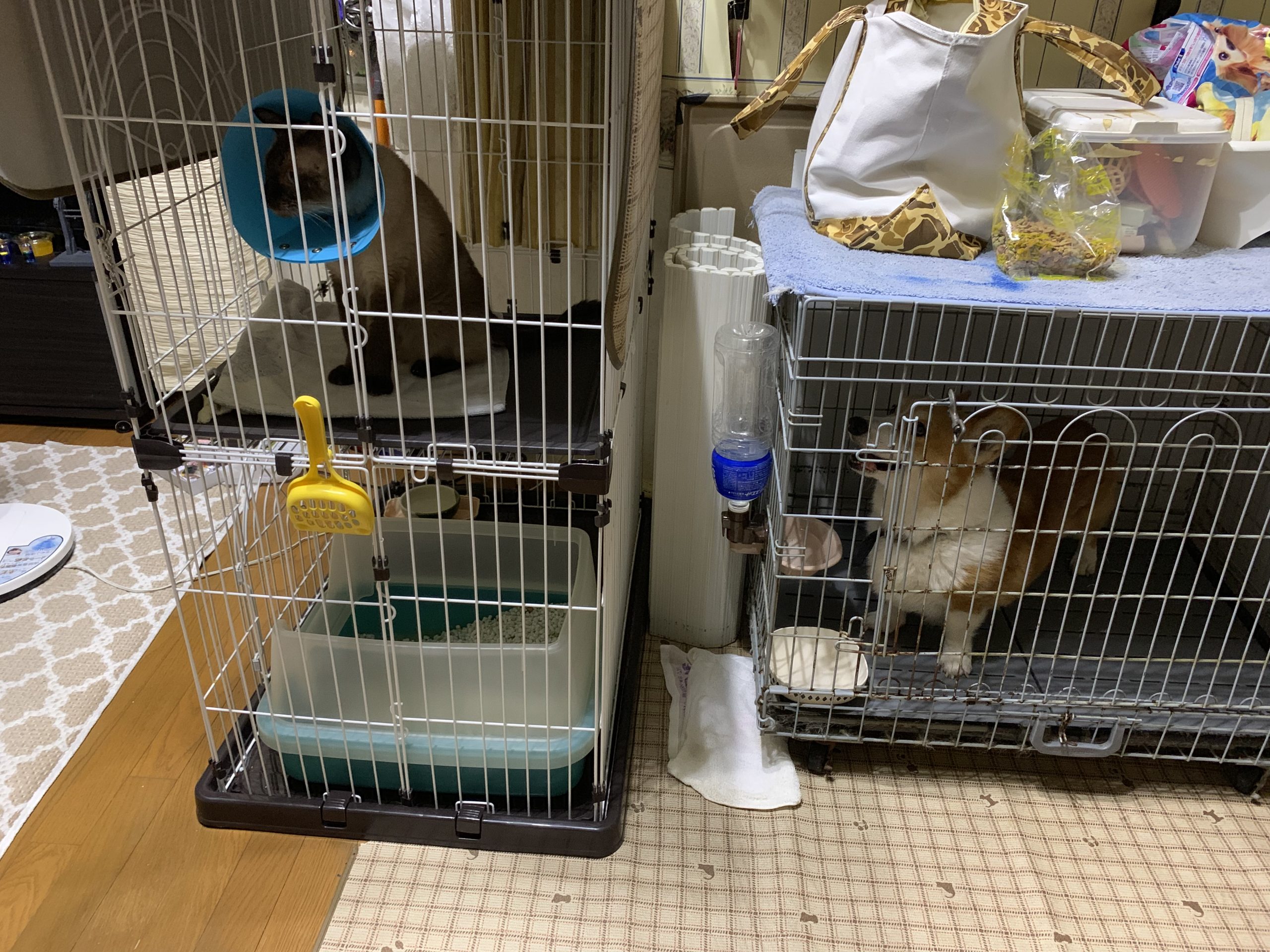 そして、キャリングバッグにずっと入らせているのは流石にかわいそうなので、(かと言って部屋で放し飼いにすると退役を血液が訪問先すべてに飛び散りますので放し飼いはしばらくNG)