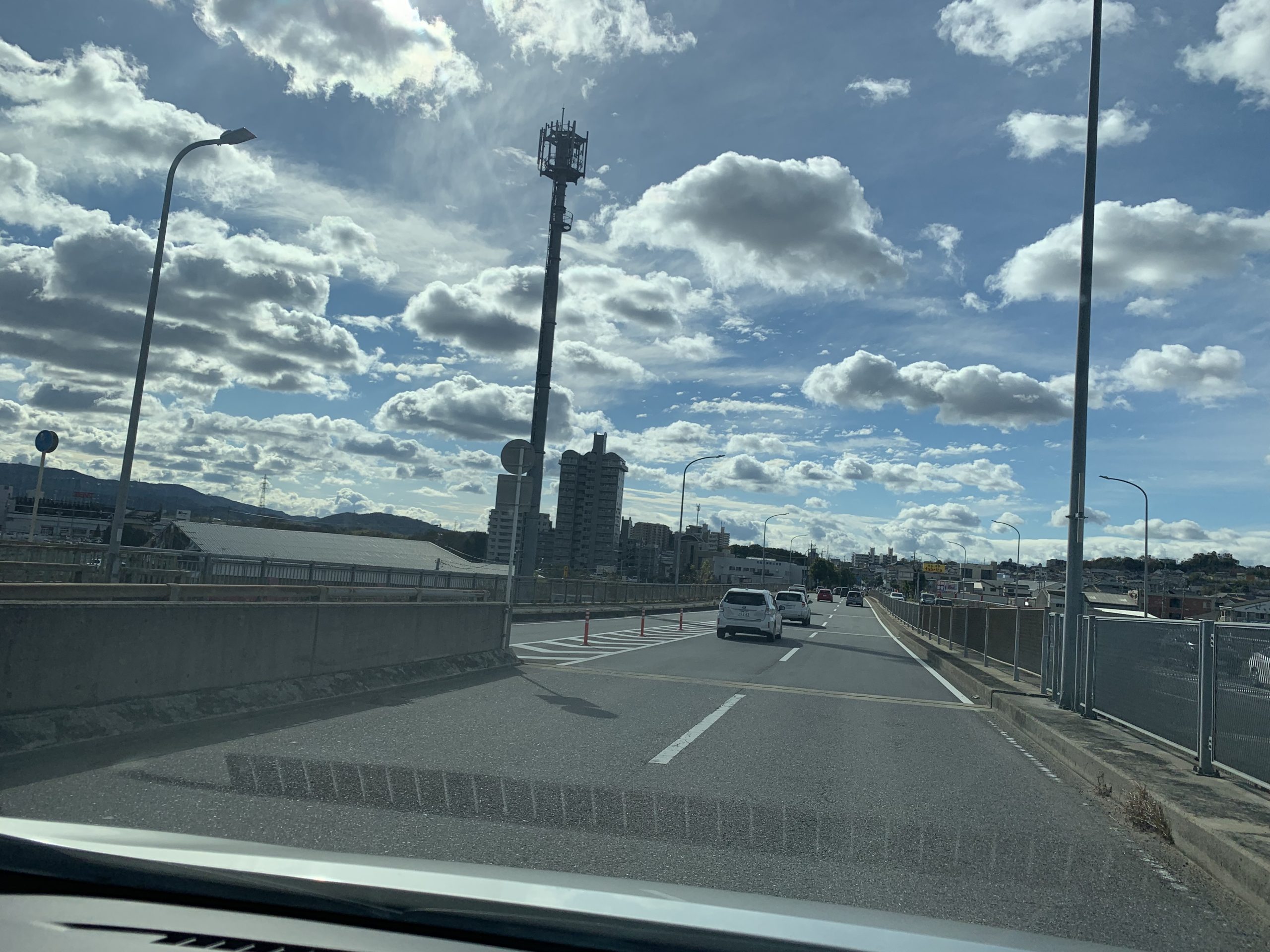 帰りの道中でまた空がなかなかダイナミックな雲を散りばめて輝いていた。