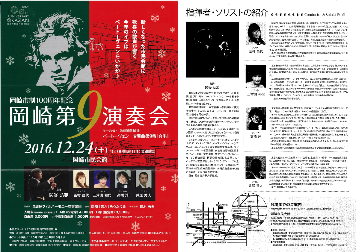 第34回岡崎第九演奏会|岡崎第9を歌う会 今年は2016/12/24(土) 市民会館にて(岡崎市)|岡崎市制100周年記念 岡崎第9演奏会