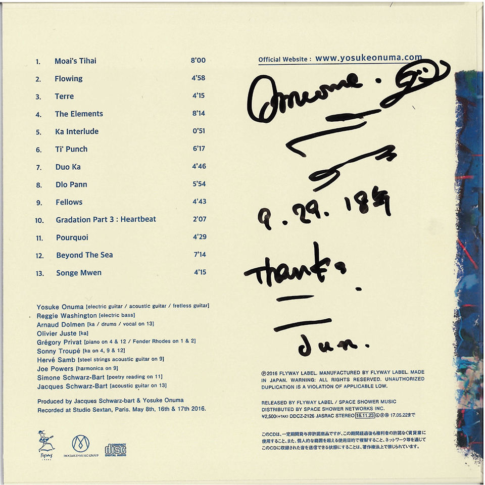 | 収録曲 1. Moai’s Tihai 2. Flowing 3. Terre 4. The Elements 5. Ka Interlude 6. Ti’ Punch 7. Duo Ka 8. Dlo Pann 9. Fellows 10. Gradation Part 3 : Heartbeat 11. Pourquoi 12. Beyond The Sea 13. Songe Mwen |