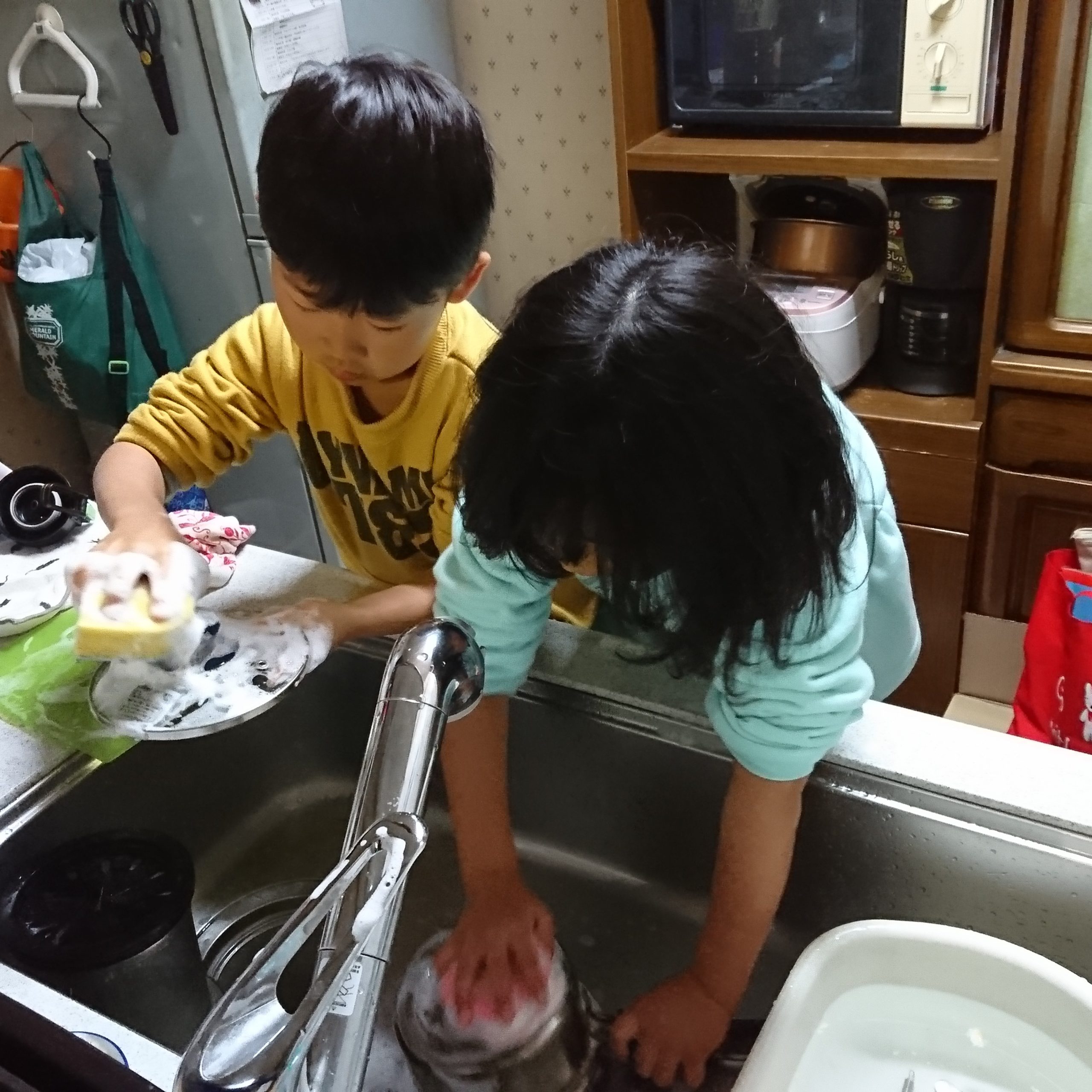 片付けを始めようかと思ったら「やりたい!」と言うので任せてみた。