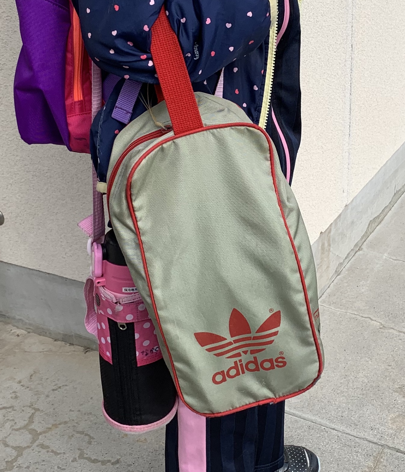 ムスメはワタクシが中学生の時に使っていたシューズケースをリサイクル。