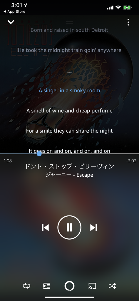 そういえば、AMAZON MUSICで、歌詞が表示されるんですよね。